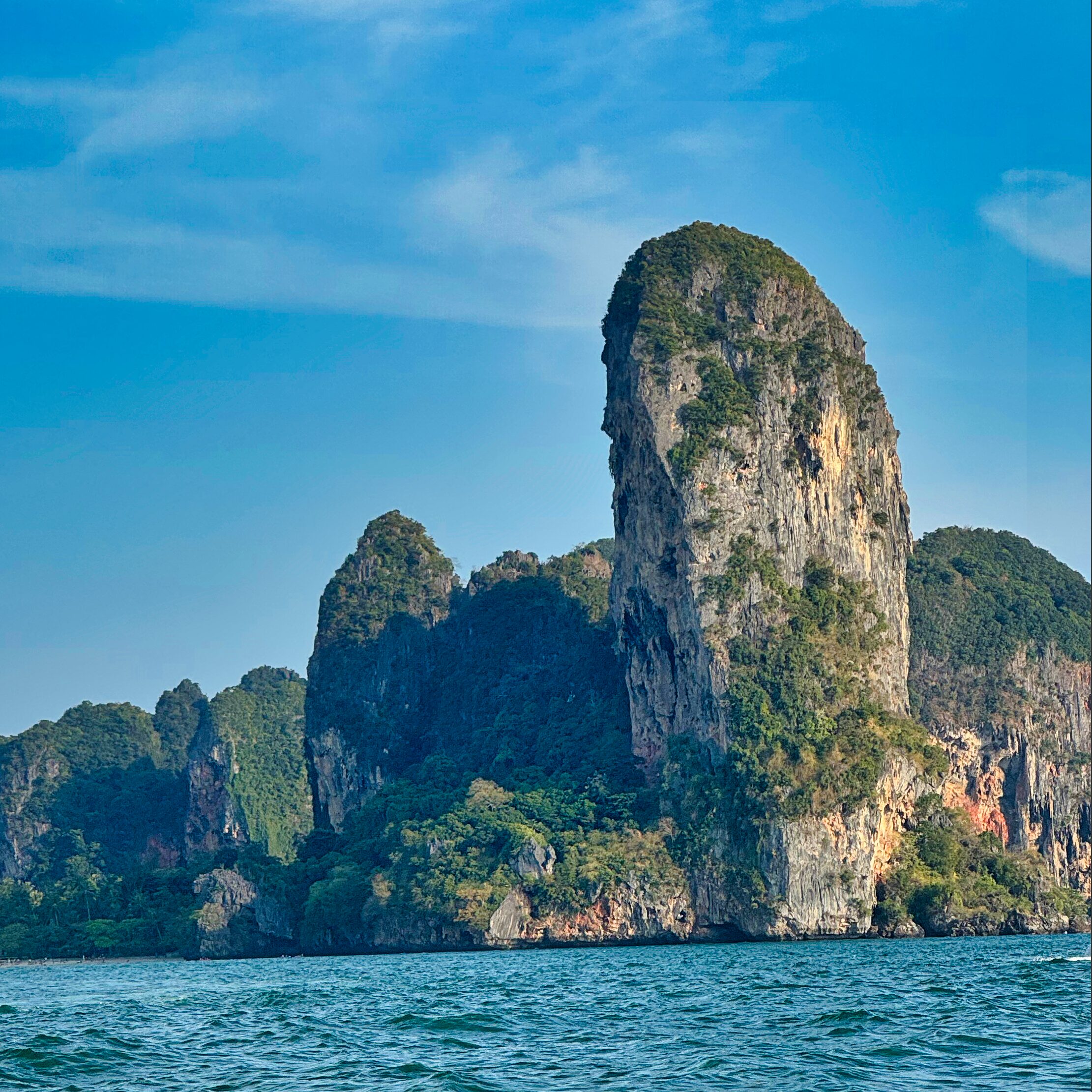 The route is located on Thaiwand Wall – a prominent crag overlooking the bay at Railey West. A major plus is that it stays shaded all day and its exposure means it often catches a cool breeze.