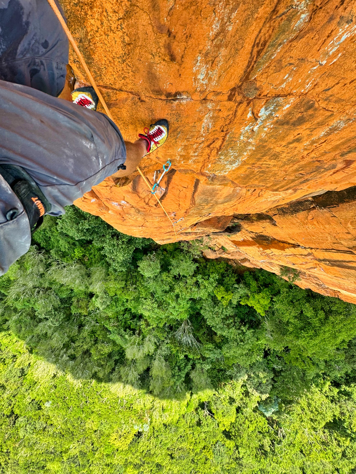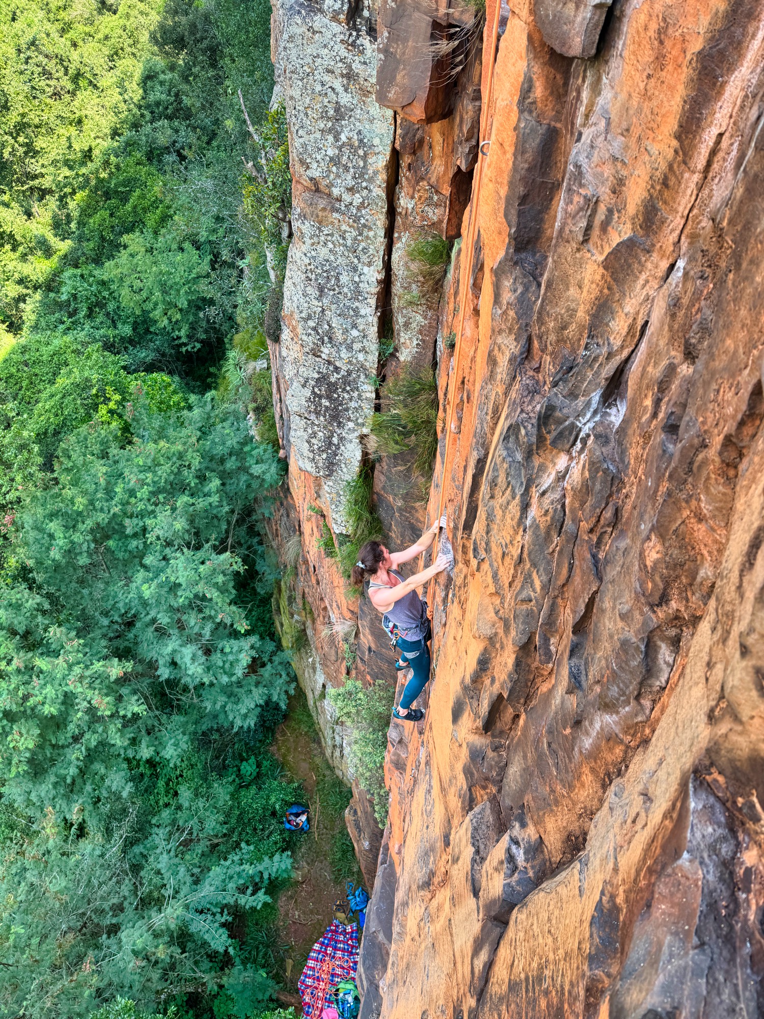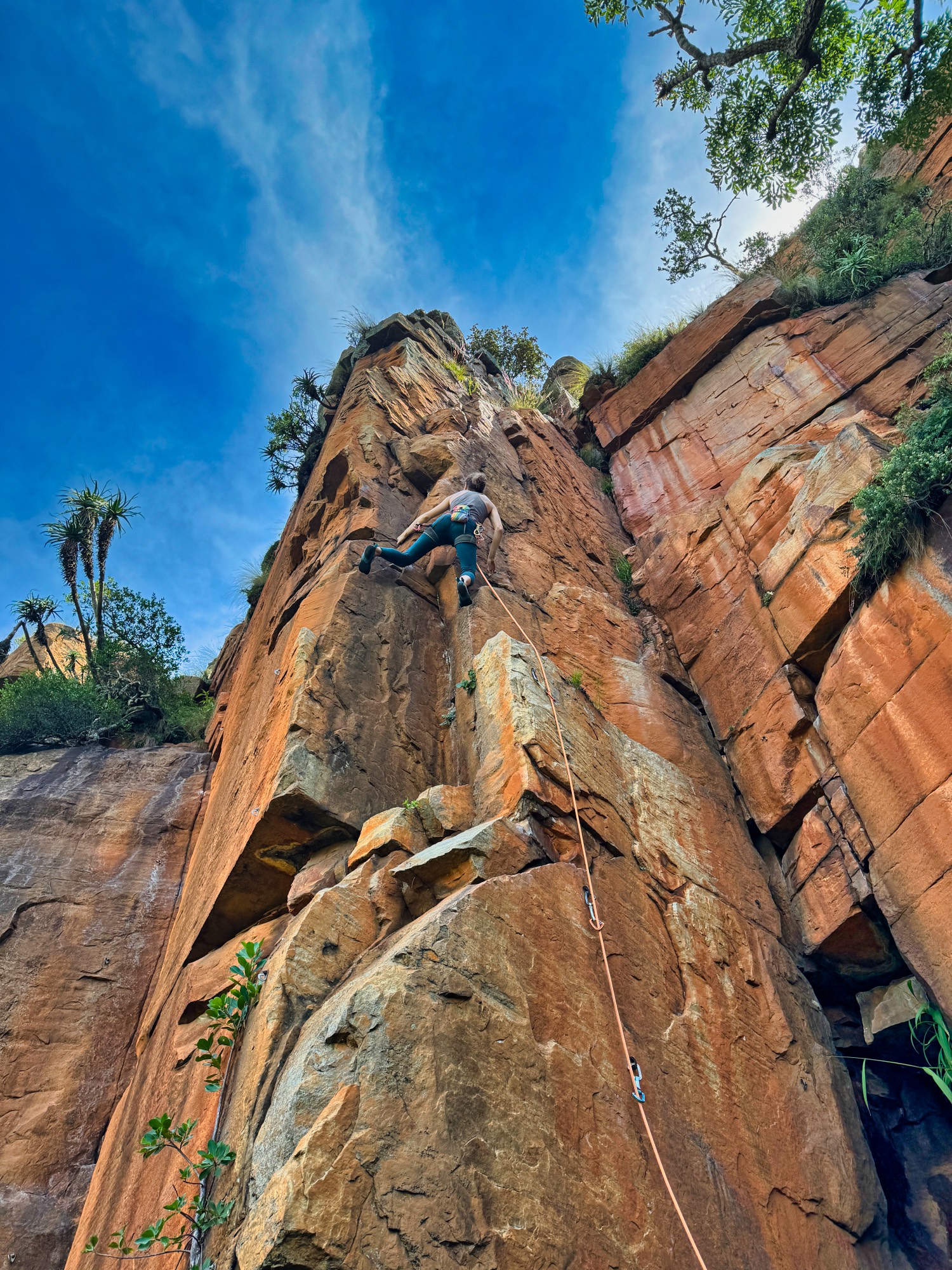 Boven offers around 800 routes (mainly sport) set on the distinctive, orange, and incredibly hard quartzite rock. Their difficulty ranges from 8 to 34 on the local South African grading scale, which corresponds to French 4 to 8c. The length of the routes depends on the sector. Generally, the routes are long – up to 30 and 40 m, and an 80-meter rope is generally a good idea. We only encountered somewhat shorter routes, around 15-20 m, at the Hallucinogenic Wall and The Cove.