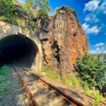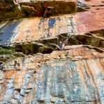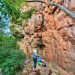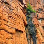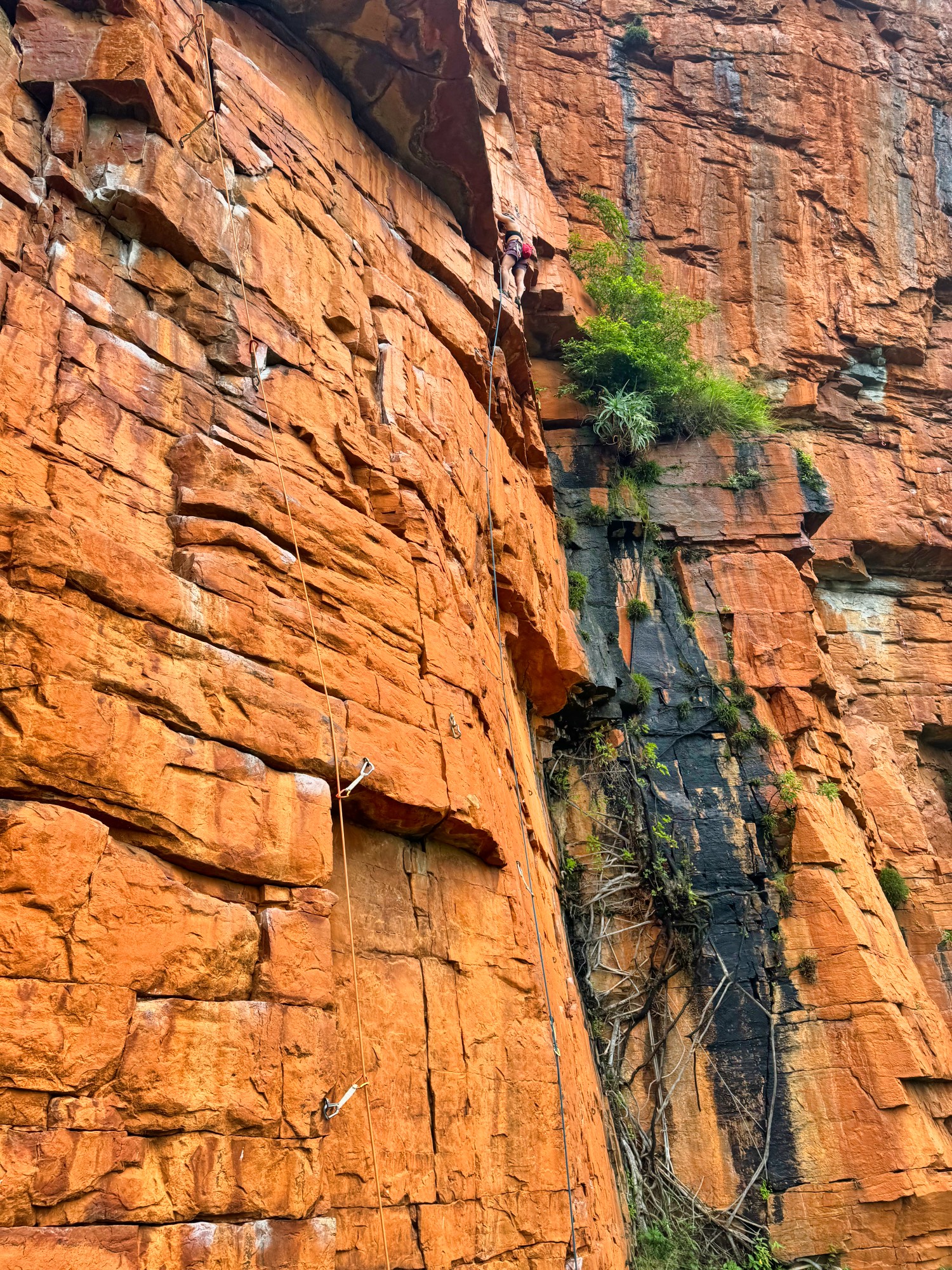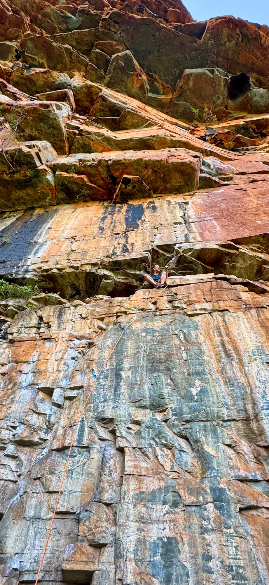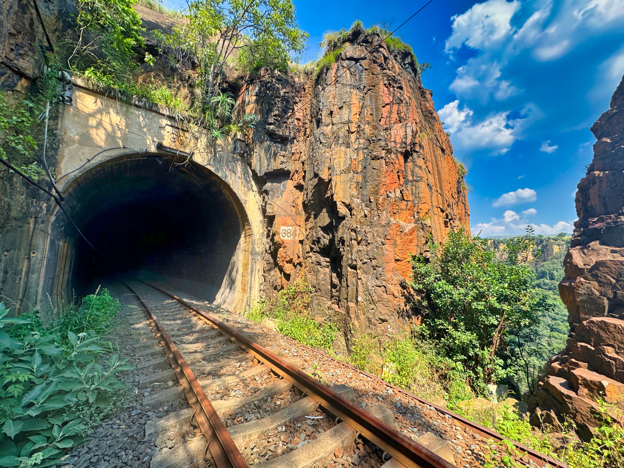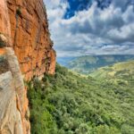 The Waterfall Crags sectors are located directly next to a township, a district historically inhabited by poorer residents. This is a relatively unfavorable place to park a car. It’s best to get there by being driven by someone (necessarily in an off-road vehicle) or to park the car near Roc ‘n Rope and then go on foot (30 minutes). The approach to the sectors is not complicated. Follow the main street to the township, turn left, and then proceed to the indicated location (using what3words app) ///concocting.spill.leaked. There, turn onto a bumpy road leading down, cross the concrete bridge over the river, and continue along the road under the highway bridge. At the end of the road, there’s a beautiful viewpoint and the descent stations for the ACRA Wall sector. If aiming for the central sectors (e.g., The Last Crag of the Century), instead of following the road to the end, find a path to the disused railway tracks, which are on the left side of the road (best cross around ///calculate.mantras.nannies). Then, walking along the tracks to the east, towards the tunnel, there are two access options to the central part of the sectors: on foot, by passing through the disused tunnel and turning into the path right behind it, or by performing about a 30-meter rappel from the station, which is about 10 meters to the right before the tunnel. Personally, I find the path more convenient.